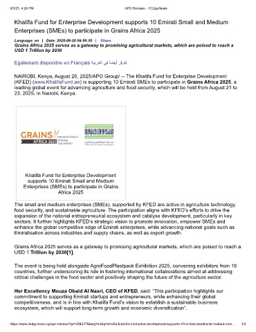 (KFED) (www.KhalifaFund.ae) is supporting 10 Emirati SMEs to participate in Grains Africa 2025, a