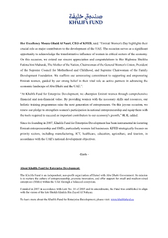 “At Khalifa Fund for Enterprise Development, we champion Emirati women through comprehensive