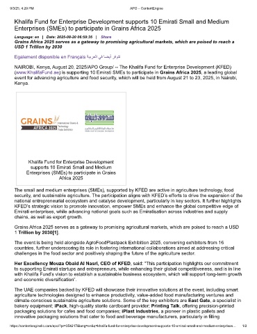 (www.KhalifaFund.ae) is supporting 10 Emirati SMEs to participate in Grains Africa 2025, a leading global