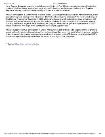 KFED’s participation in Grains Africa 2025 will enable UAE companies to expand into African markets, while