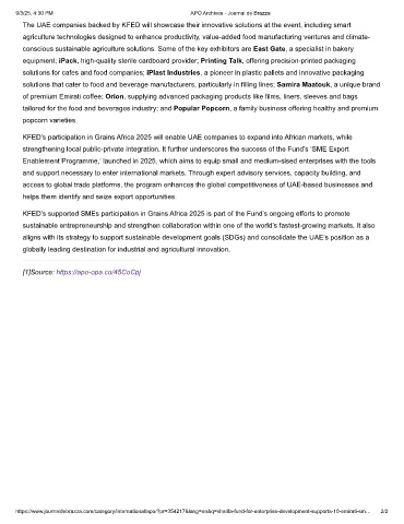 KFED’s participation in Grains Africa 2025 will enable UAE companies to expand into African markets, while