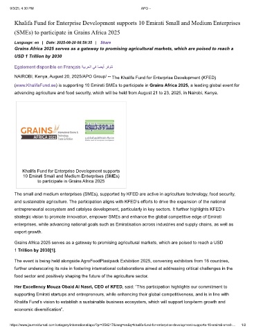 (www.KhalifaFund.ae) is supporting 10 Emirati SMEs to participate in Grains Africa 2025, a leading global event for