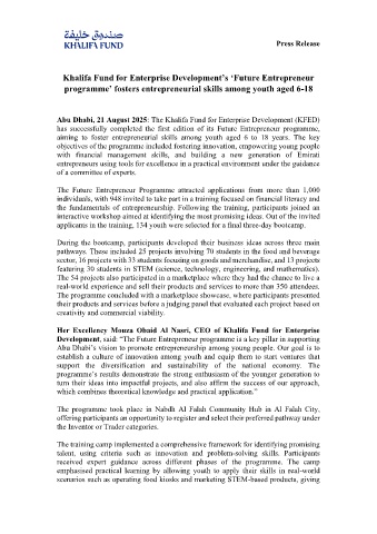 Abu Dhabi, 21 August 2025: The Khalifa Fund for Enterprise Development (KFED)