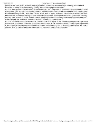 KFED’s participation in Grains Africa 2025 will enable UAE companies to expand into African markets, while