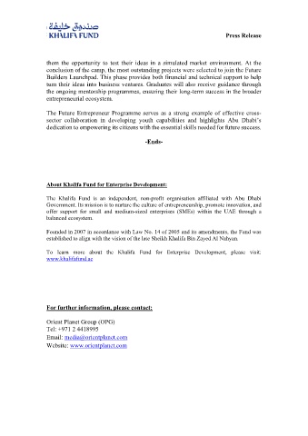 To learn more about the Khalifa Fund for Enterprise Development, please visit: