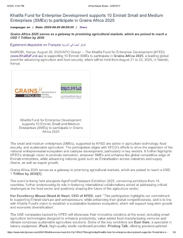 (www.KhalifaFund.ae) is supporting 10 Emirati SMEs to participate in Grains Africa 2025, a leading global