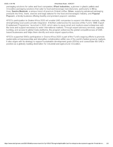 KFED’s participation in Grains Africa 2025 will enable UAE companies to expand into African markets, while