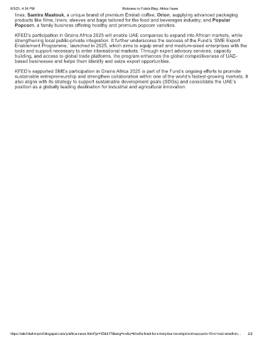 KFED’s participation in Grains Africa 2025 will enable UAE companies to expand into African markets, while