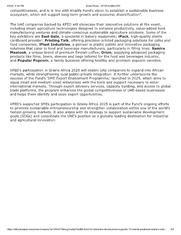 KFED’s participation in Grains Africa 2025 will enable UAE companies to expand into African