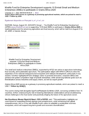 (KFED) (www.KhalifaFund.ae) is supporting 10 Emirati SMEs to participate in Grains Africa 2025, a