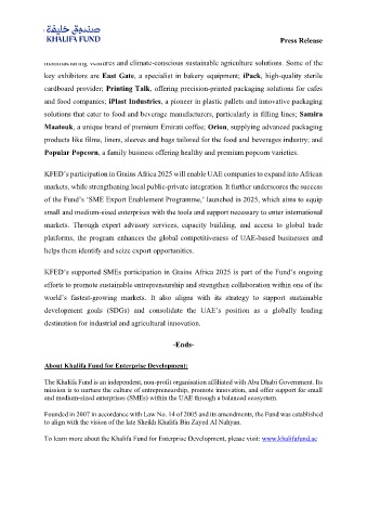 KFED’s participation in Grains Africa 2025 will enable UAE companies to expand into African