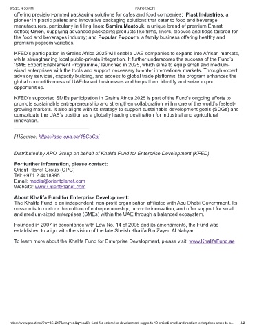KFED’s participation in Grains Africa 2025 will enable UAE companies to expand into African markets,