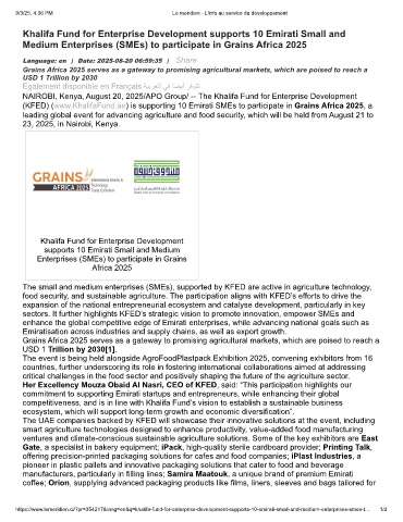 (KFED) (www.KhalifaFund.ae) is supporting 10 Emirati SMEs to participate in Grains Africa 2025, a