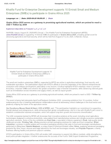 (www.KhalifaFund.ae) is supporting 10 Emirati SMEs to participate in Grains Africa 2025, a leading global event for