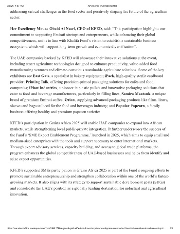 KFED’s participation in Grains Africa 2025 will enable UAE companies to expand into African