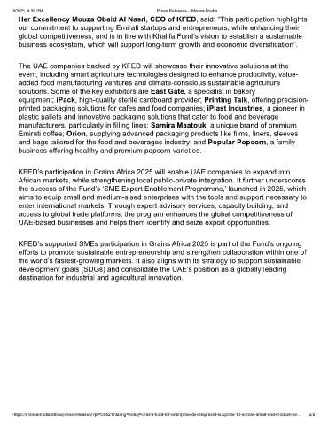 KFED’s participation in Grains Africa 2025 will enable UAE companies to expand into
