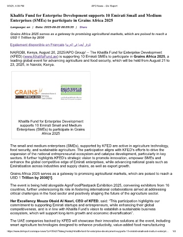 (KFED) (www.KhalifaFund.ae) is supporting 10 Emirati SMEs to participate in Grains Africa 2025, a