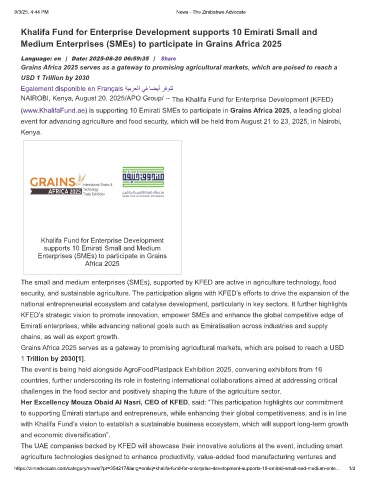 (www.KhalifaFund.ae) is supporting 10 Emirati SMEs to participate in Grains Africa 2025, a leading global