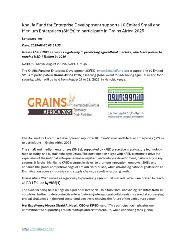 Medium Enterprises (SMEs) to participate in Grains Africa 2025