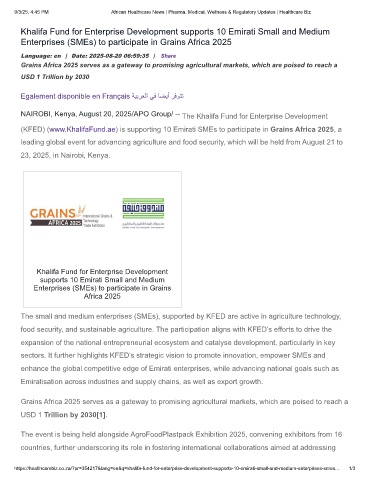 (KFED) (www.KhalifaFund.ae) is supporting 10 Emirati SMEs to participate in Grains Africa 2025, a