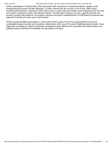 KFED’s participation in Grains Africa 2025 will enable UAE companies to expand into African markets, while