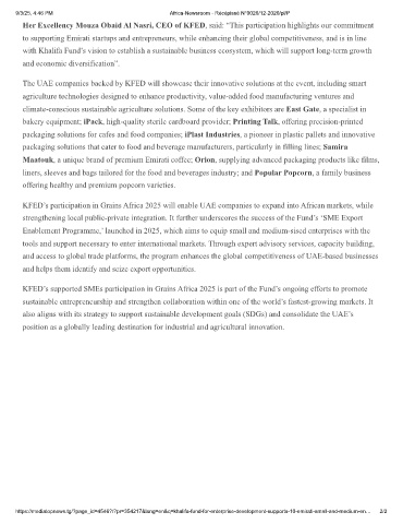 KFED’s participation in Grains Africa 2025 will enable UAE companies to expand into African markets, while