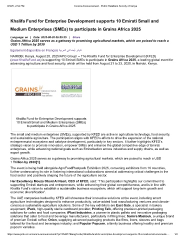 (www.KhalifaFund.ae) is supporting 10 Emirati SMEs to participate in Grains Africa 2025, a leading global event for