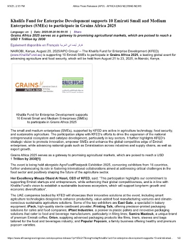 (www.KhalifaFund.ae) is supporting 10 Emirati SMEs to participate in Grains Africa 2025, a leading global event for