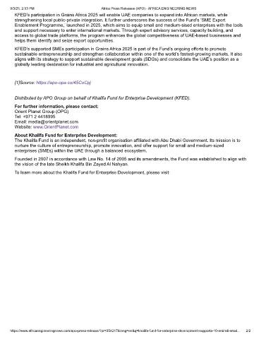 KFED’s participation in Grains Africa 2025 will enable UAE companies to expand into African markets, while