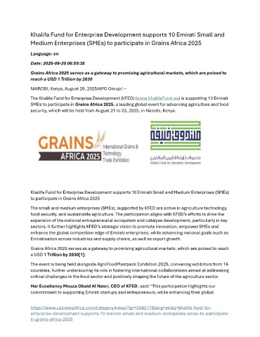 Medium Enterprises (SMEs) to participate in Grains Africa 2025