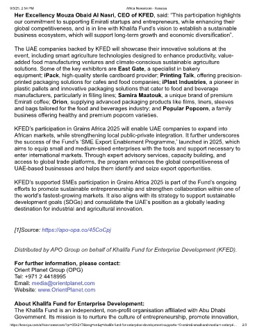 KFED’s participation in Grains Africa 2025 will enable UAE companies to expand into