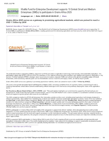KFED’s participation in Grains Africa 2025 will enable UAE companies to expand into African markets, while strengthening local public-private