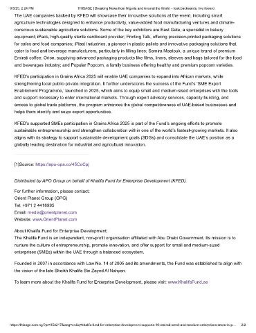 KFED’s participation in Grains Africa 2025 will enable UAE companies to expand into African markets, while