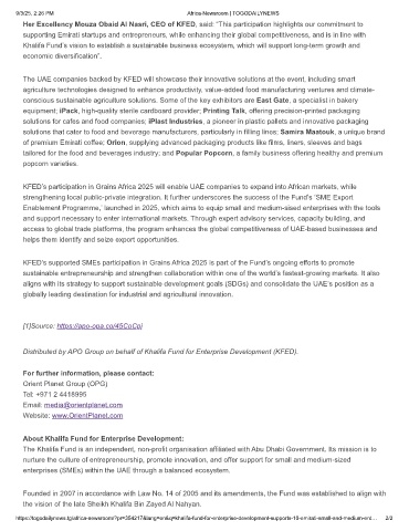 KFED’s participation in Grains Africa 2025 will enable UAE companies to expand into African markets, while