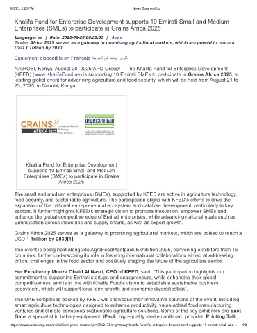 (KFED) (www.KhalifaFund.ae) is supporting 10 Emirati SMEs to participate in Grains Africa 2025, a
