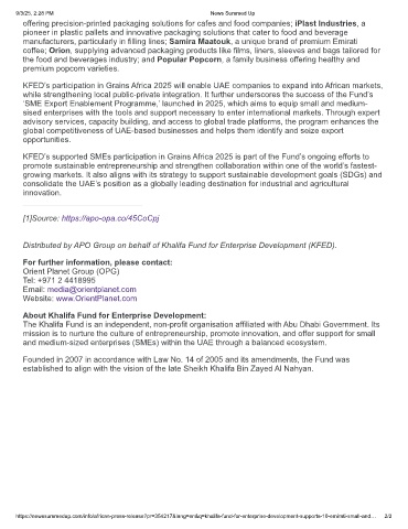 KFED’s participation in Grains Africa 2025 will enable UAE companies to expand into African markets,