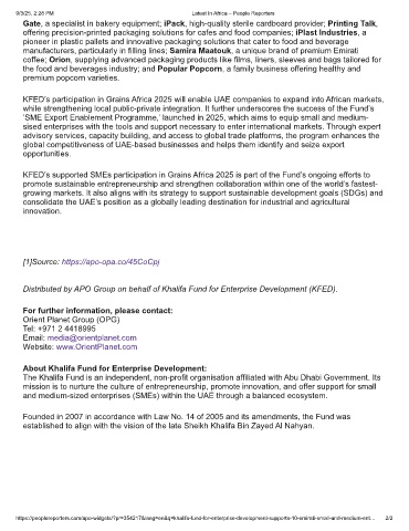 KFED’s participation in Grains Africa 2025 will enable UAE companies to expand into African markets,