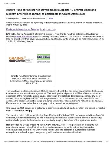 (KFED) (www.KhalifaFund.ae) is supporting 10 Emirati SMEs to participate in Grains Africa 2025, a