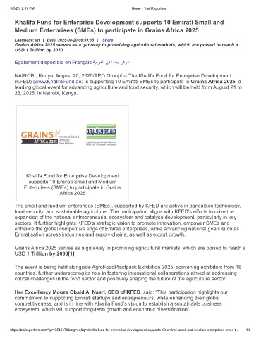 (KFED) (www.KhalifaFund.ae) is supporting 10 Emirati SMEs to participate in Grains Africa 2025, a