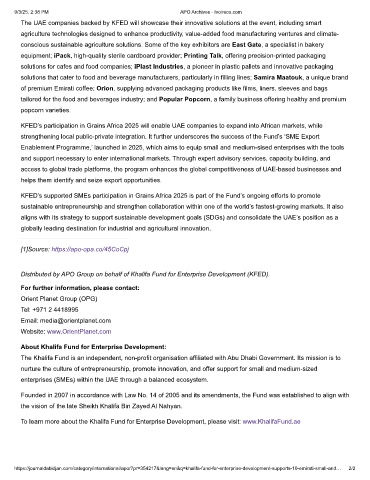 KFED’s participation in Grains Africa 2025 will enable UAE companies to expand into African markets, while
