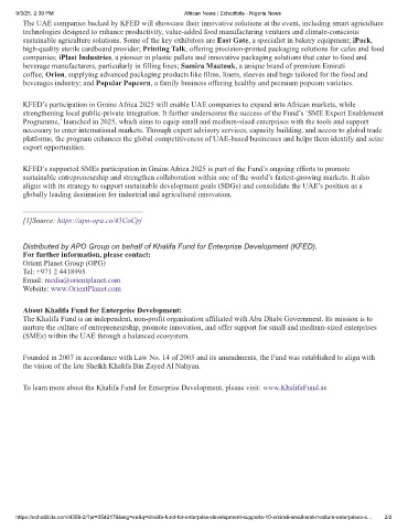 KFED’s participation in Grains Africa 2025 will enable UAE companies to expand into African markets, while