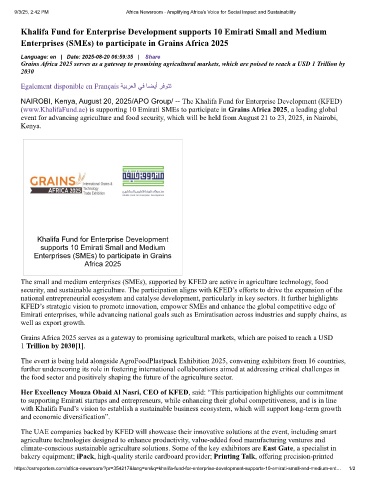 (www.KhalifaFund.ae) is supporting 10 Emirati SMEs to participate in Grains Africa 2025, a leading global
