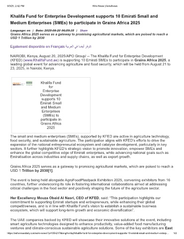 (KFED) (www.KhalifaFund.ae) is supporting 10 Emirati SMEs to participate in Grains Africa 2025, a