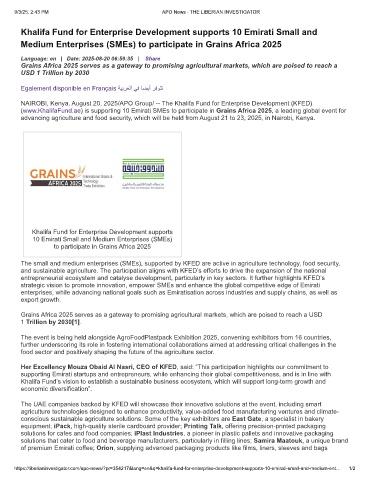 (www.KhalifaFund.ae) is supporting 10 Emirati SMEs to participate in Grains Africa 2025, a leading global event for