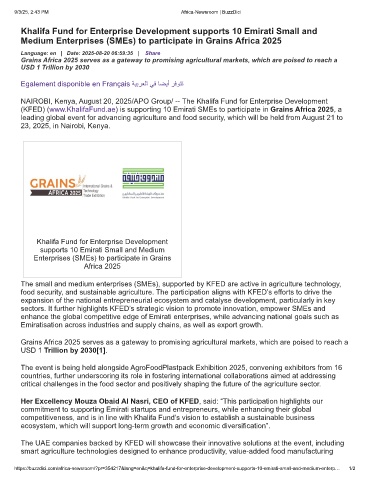 (KFED) (www.KhalifaFund.ae) is supporting 10 Emirati SMEs to participate in Grains Africa 2025, a