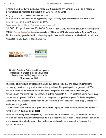 (KFED) (www.KhalifaFund.ae) is supporting 10 Emirati SMEs to participate in Grains Africa