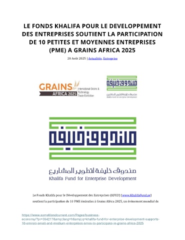 soutient la participation de 10 PME émiraties à Grains Africa 2025, un événement mondial de