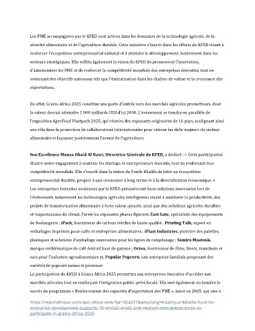 La participation du KFED à Grains Africa 2025 permettra aux entreprises émiraties d’accéder aux