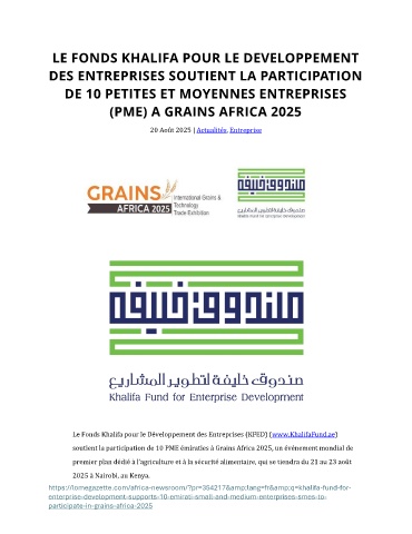 soutient la participation de 10 PME émiraties à Grains Africa 2025, un événement mondial de