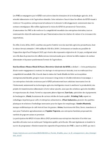 La participation du KFED à Grains Africa 2025 permettra aux entreprises émiraties d’accéder aux